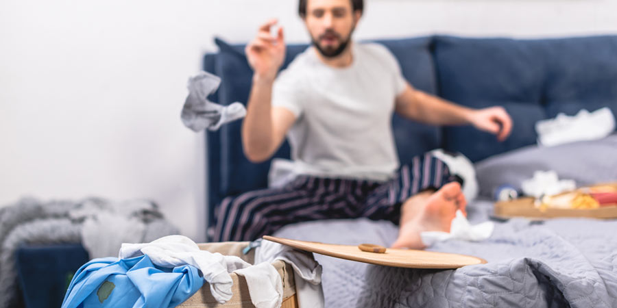 I can recall a particularly steamy encounter where, after a few glasses of wine and intense flirting, we went back to his place and literally left clothes strewn in the hall as we headed towards his bedroom. The night was memorable but so was stepping over mounds of clothes, cereal bowls, pizza boxes and records strewn on the floor. I was so stressed getting up in the dark to pee in case I stepped on, or in, something.